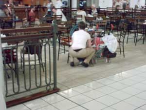 Sitting down at the train station is ok, if what's behind you isn't glass and me!