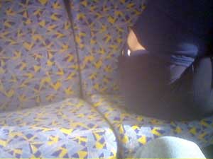 This was taken by one of the sites fans on his mobile camera! The picture on the right is some poor girl sitting on a train!